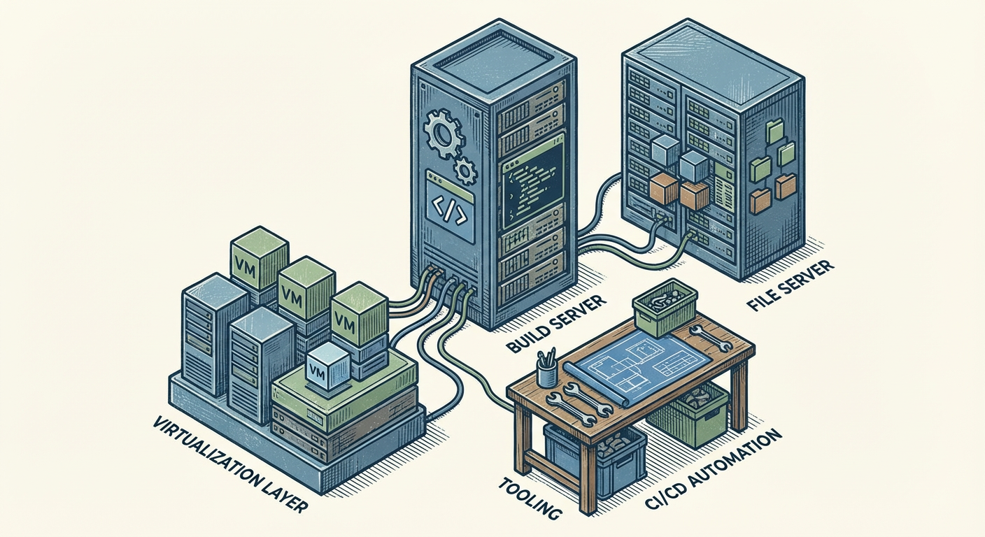 Virtualisierung ist die Basis für ein flexibles Miteinander. Neue Services oder SourceCode-Generatoren werden in Form virtueller Maschinen erstellt. Als „Fabrikgebäude“ dient ein PROXMOX VE Clusters, der die Unterbringung der virtuellen Maschinen ermöglicht.